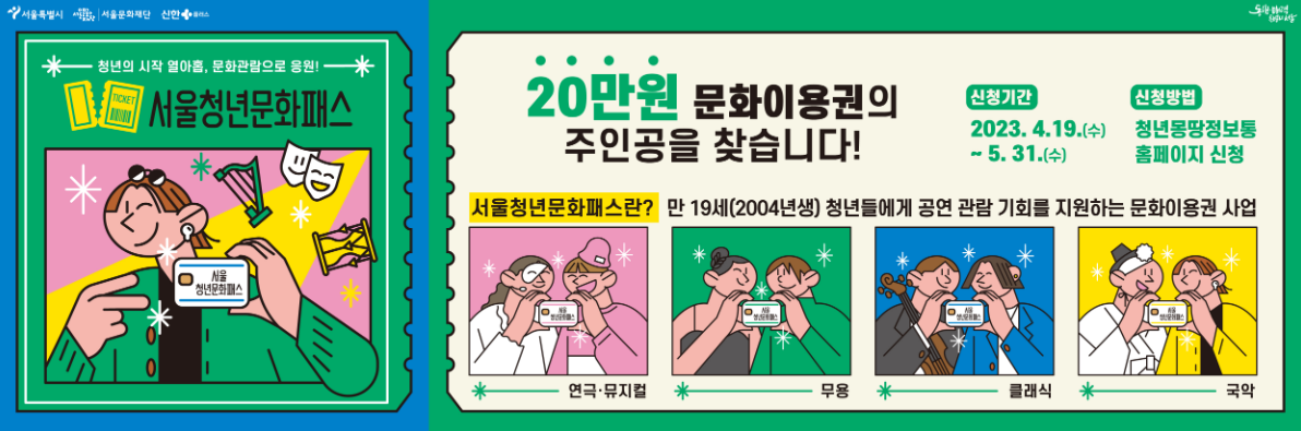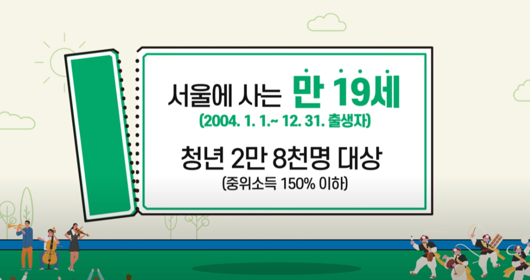 서울시에서 이제 막 사회로 나온 만 19세(2004년생) 청년을 위해 다양한 문화예술 공연 관람 기회를 제공하기 위해 서울청년문화패스카드를 발급합니다.