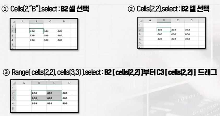 Cells 개체를 통해서도 엑셀의 범위를 선택할 수 있습니다.