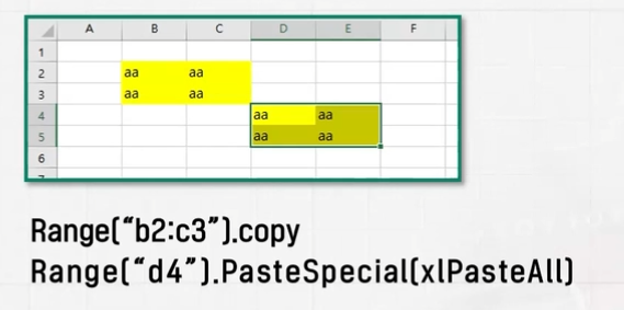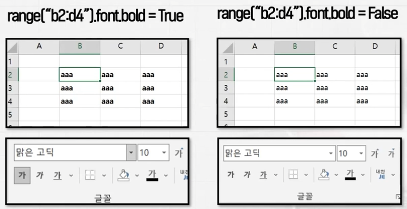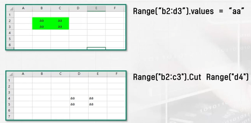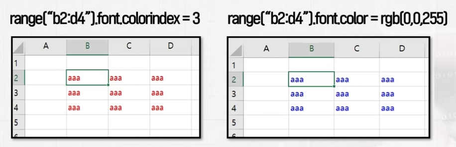 range 개체를 이용하면 엑셀의 범위를 선택할 수 있습니다.