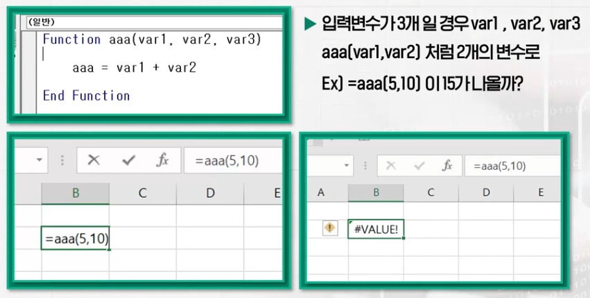 엑셀 매크로에서 내장함수 대신 직접 함수를 정의해서 만들 수가 있습니다.