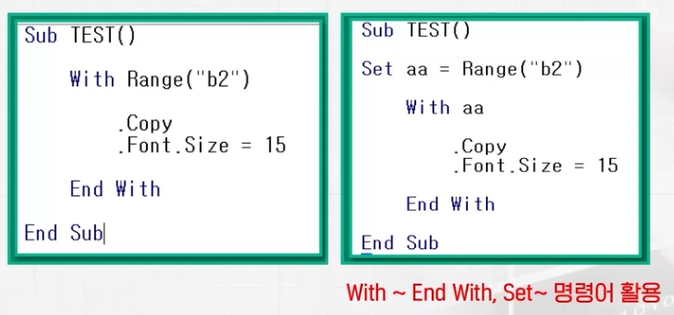 엑셀 VBA 매크로 배우기 With ~ End With, Set ~ 배우기
