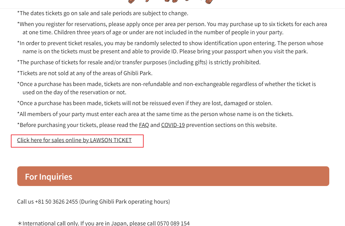 📌 지브리 테마파크는 사전 예약제로 진행되며 티켓은 공식 홈페이지를 통해 예약할 수 있습니다. 지브리 대창고 티켓은 평일 기준 2,000엔 주말 및 공휴일은 2,500엔이며 청춘 언덕과 돈도코 숲의 티켓은 각 1,000엔입니다. 워낙 인기가 많다 보니 구매하기 까다로워 여행 가시기 전 미리미리 준비하시길 추천드려요
