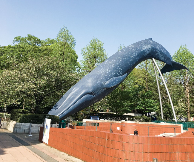 국립 과학 박물관 : 바다 표면 위로 뛰어오르는 듯한 흰수염고래 조형물이 눈에 띄는 국립과학박물관은 1877년 설립된 일본의 유일한 종합 과학박물관이다. 과학 박물관이라기보다 자연사박물관에 좀더 가까운 느낌의 박물관