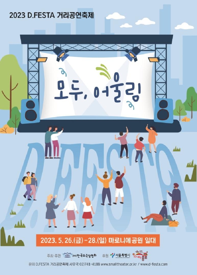 5.26 금~5.28 일, 마로니에 공원 일대 거리공연 예술을 마주할 수 있는 기회다. 극단 마중물의 ‘마당극’, 극단 신인류의 ‘Together’(뮤지컬), 집단의 ‘북청 사자놀음’ 등 총 14개의 공연이 펼쳐지며, 모든 공연은 무료로 진행됩니다.