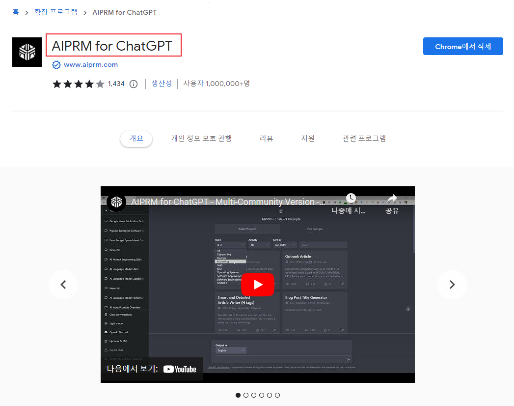 크롬 브라우저 앱스토어에 접속해서 AIPRM을 검색하 후 Chreom에 추가하면 바로 이용이 가능합니다.